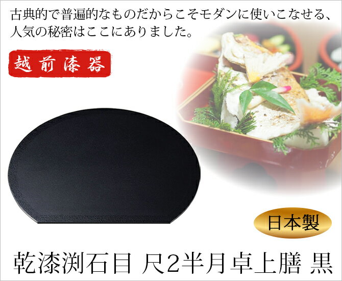 膳 お膳 お盆 ブラック 御膳 トレー ランチョンマット おもてなし お祝い 日本製 来客 越前漆器 艶 シンプル 上品 器 漆器 おすすめ 乾漆渕石目 尺2半月卓上膳 黒 1009204
