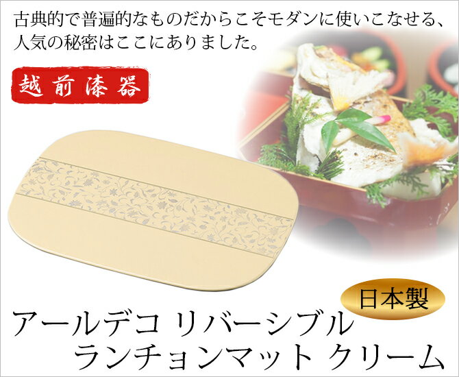 膳 お膳 御膳 おしゃれ お盆 トレー ランチョンマット 両面 おもてなし お祝い 日本製 来客 越前漆器 艶 シンプル 上品 器 漆器 おすすめ アールデコ リバーシブルランチョンマット クリーム 1009701