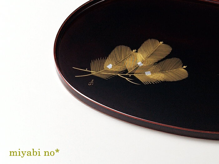 越前塗 沈金松小判盆 溜 36.3×26××1.5cm日本製 木製 漆塗り 沈金 お盆 もてなし盆 トレー お膳 運び盆 日展作家 冨田立山作