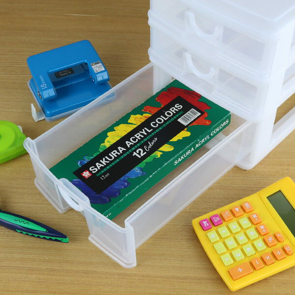裁縫道具や細かなパーツケースとしても使いやすいく、3段あるので分類収納が可能です。